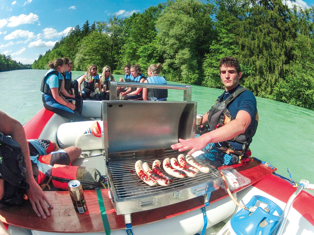 Float past stunning alpine scenery towards the picturesque city of Bern on a 16-seat raft with an optional BBQ grill and sound system. The water is perfect for a refreshing swim on hot summer days where you can float alongside the boat. Accompanied by professional river guides to help navigate the rapids along the way, the trip provides a safe and fun experience for groups of friends, family, and children. This trip is available as a private boat for CHF 990.- (max 14 seats) or individual seats for CHF 110.- per person (min 6 participants).
