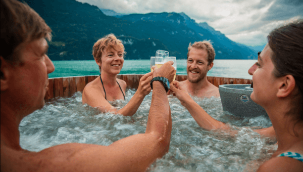 We invite you to experience winter bathing on Lake Brienz – in a Hot Tub! Enjoy the beautiful panorama and wonderful winter atmosphere with warmth. Cater your bath with fondue and drinks before, during, or after swimming. In our two or six-seat hot tubs, indulge in an unforgettable moment on wintry Lake Brienz.